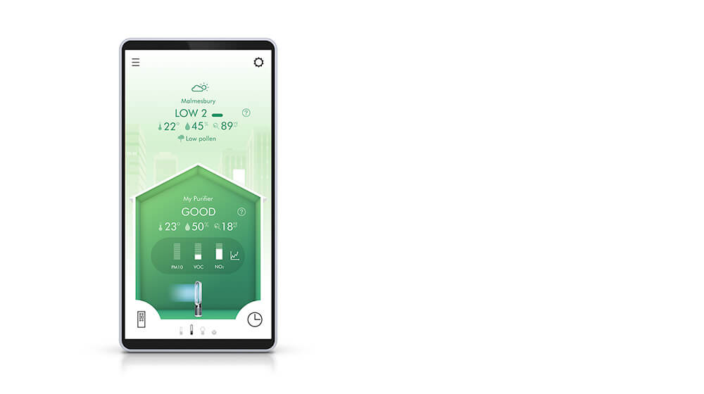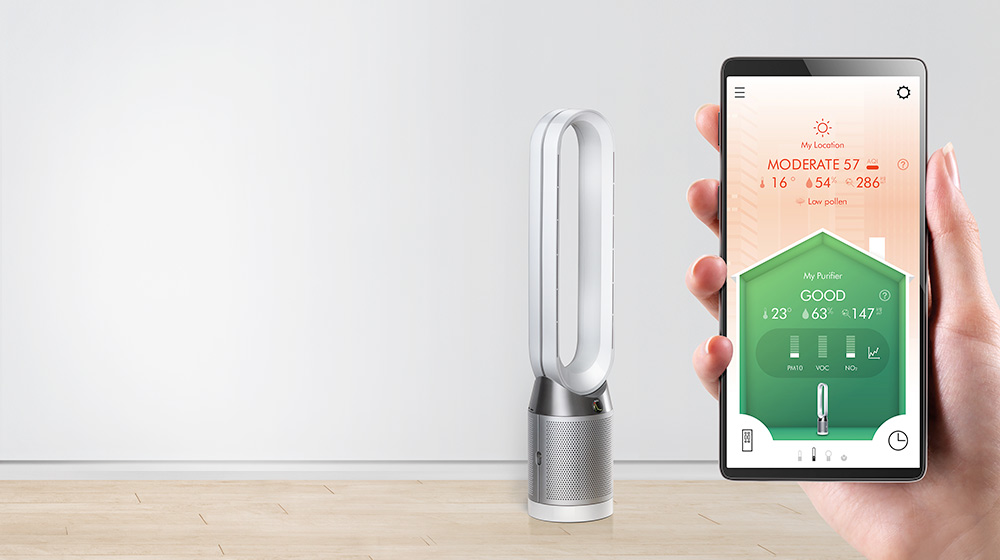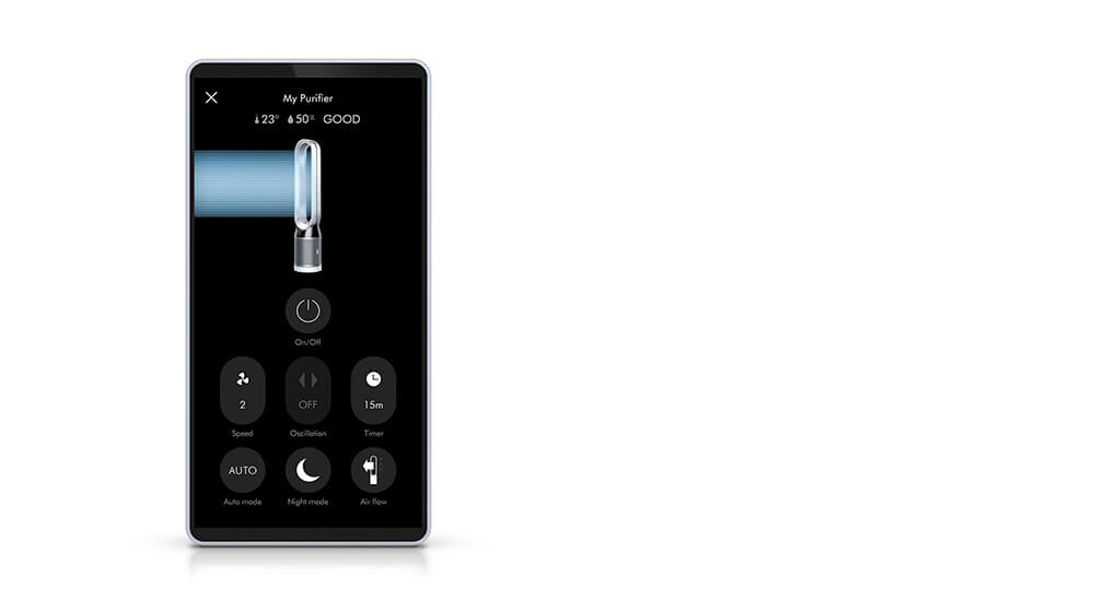 Control your Dyson Pure Cool™ purifying fan and quickly monitor air quality indoors and out – direct from your device, or automatically through your machine. With detailed reports on air quality, oscillator position, pollution and filter life.