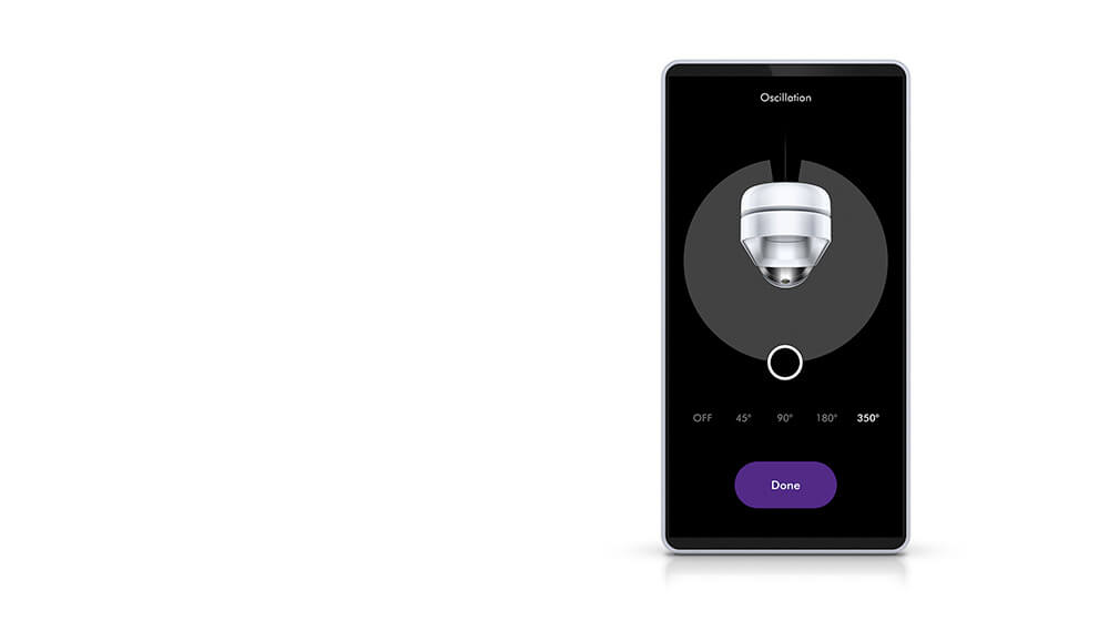 Choose how air circulates around your room. Set the degree of your machine’s oscillation using the Dyson Link app, in increments between 45° and 350°.
