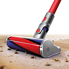Invented for hard floors. Soft roller cleaner head removes large debris and fine dust simultaneously.