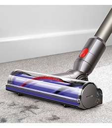 Direct-drive cleaner head drives bristles deeper into the carpet to remove even more dirt. 150% more brush bar power than the Dyson V6 Motohead vacuum.8